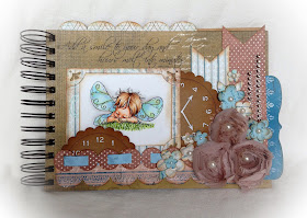 I have for you all today a mini album with the sweet Fairy Sleepy from Mo's Digital Pencil. as my focal image. This time I have colored it to be more boyish to go along with the album cover I have made using a Quick Quotes album kit that I won a month back!